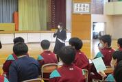 6年生は体育館から退場すると、一目散に教室に戻っていきました。廊下を走っていましたが、このときはしょうがありません。「許す!!!」